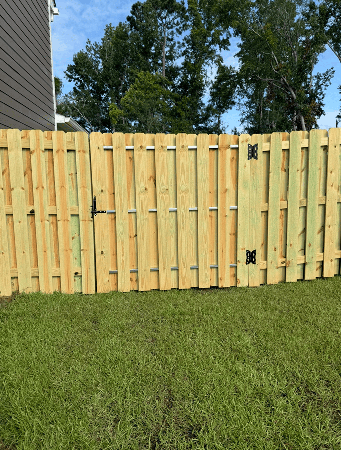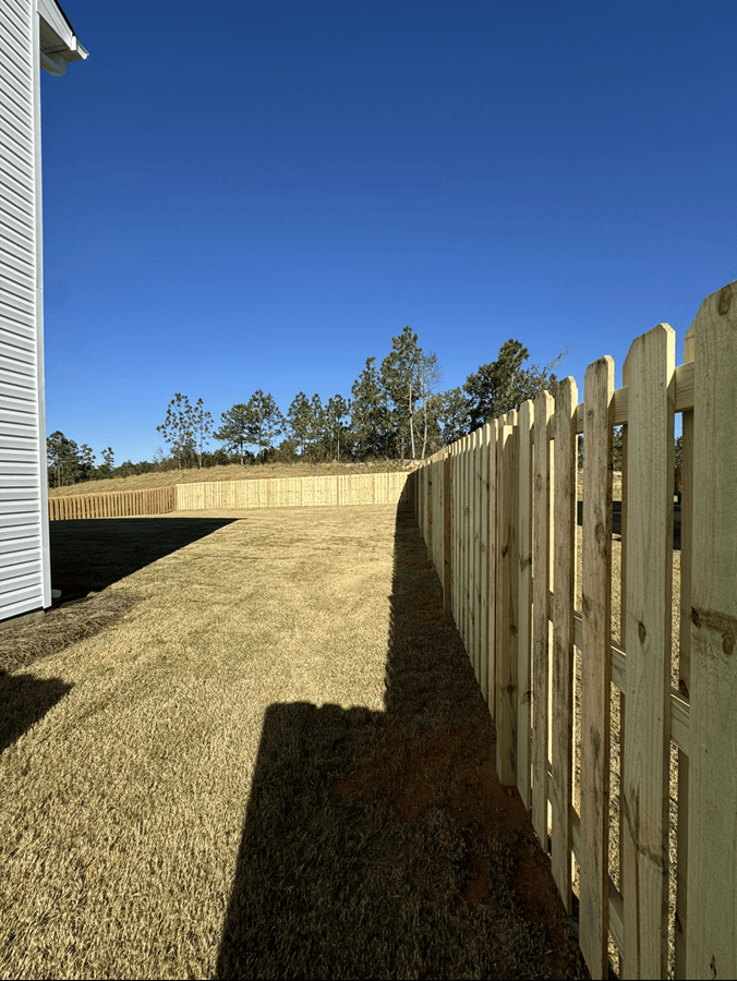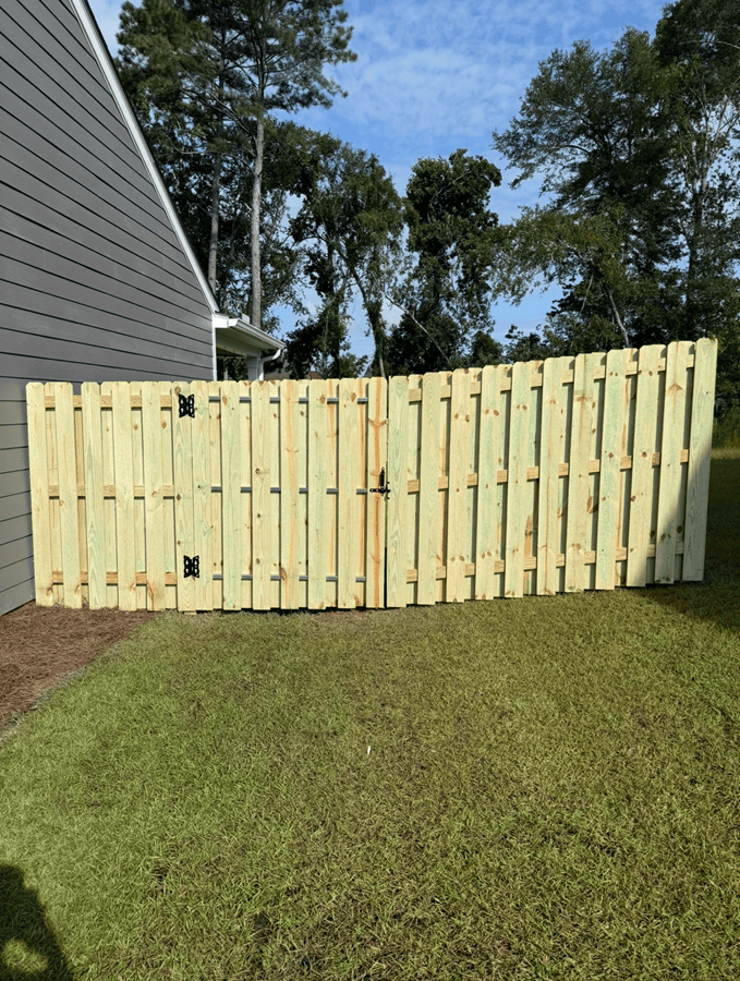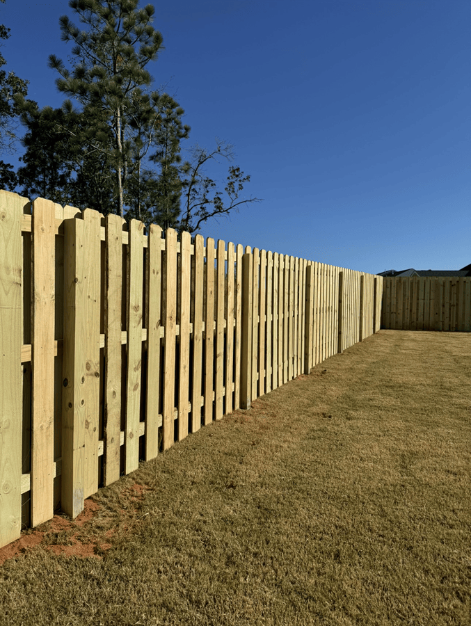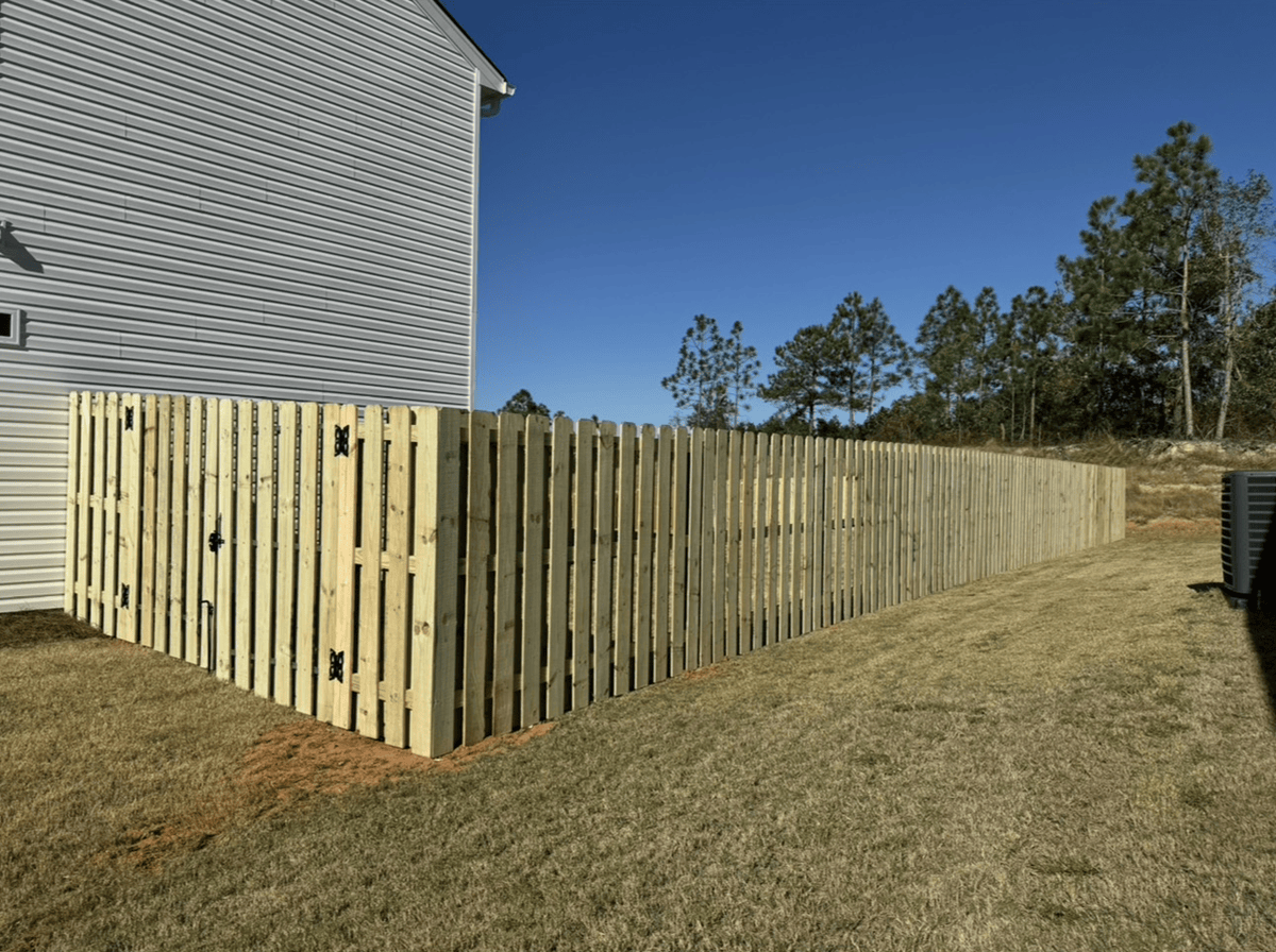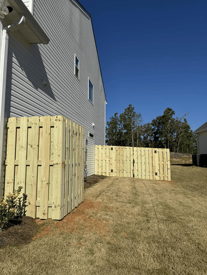 This fence installation in Evans, GA features a 6’ Shadowbox wood fence paired with a 4’ black aluminum section, creating the perfect balance of privacy and open views. The Shadowbox design gives a clean, finished look from both sides, offering security and long-lasting style. The aluminum section opens […]
