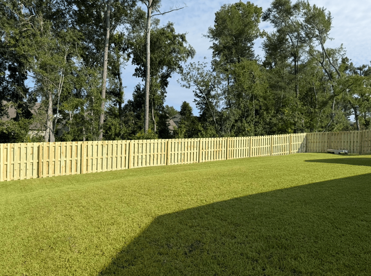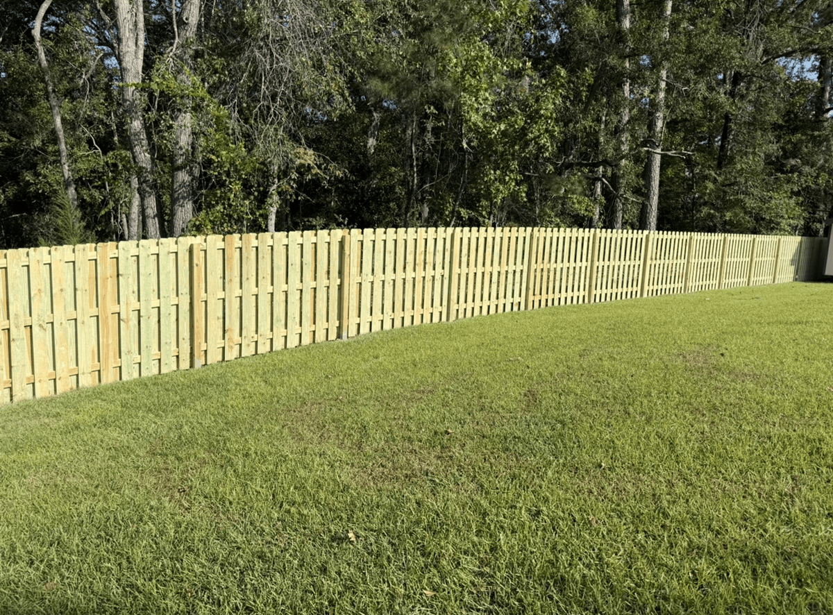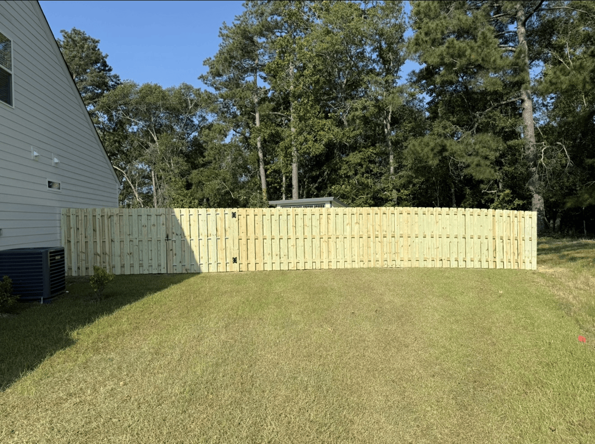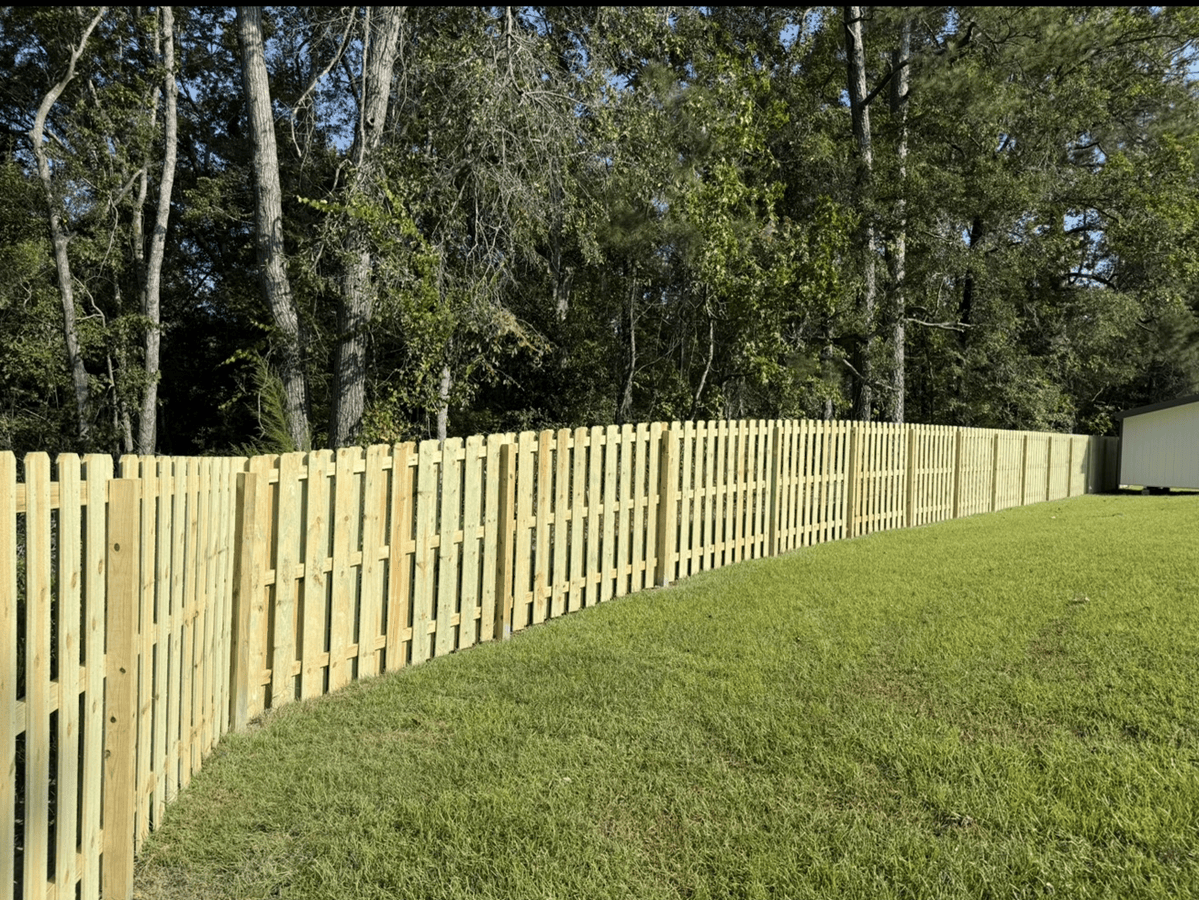 This fence installation in Evans, GA features a 6’ Shadowbox wood fence paired with a 4’ black aluminum section, creating the perfect balance of privacy and open views. The Shadowbox design gives a clean, finished look from both sides, offering security and long-lasting style. The aluminum section opens […]